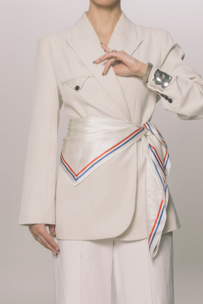 Klúturinn er ljós/hvítur sem er vísun í táknræna merkingu tengt samstöðu og jafnréttisbaráttu kvenna í gegnum tíðina. Kanturinn á klútnum er í fánalitunum, tilvísun í þjóðarstoltið.